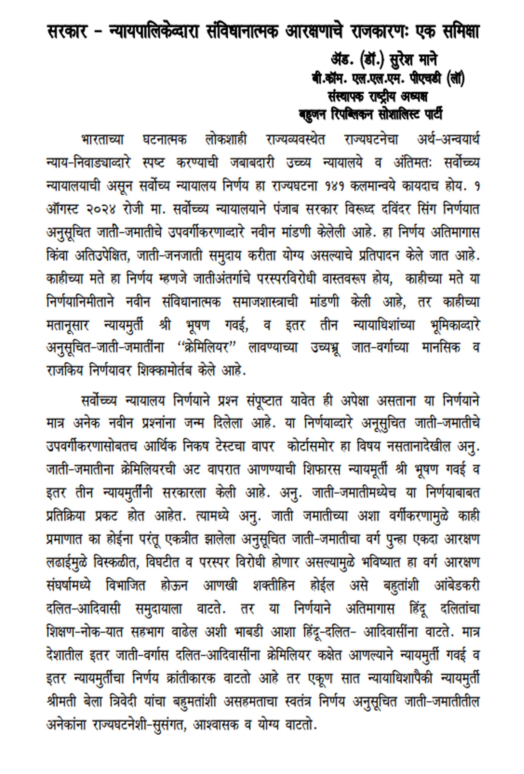 BRSP Founder: Adv. Dr. Suresh Mane